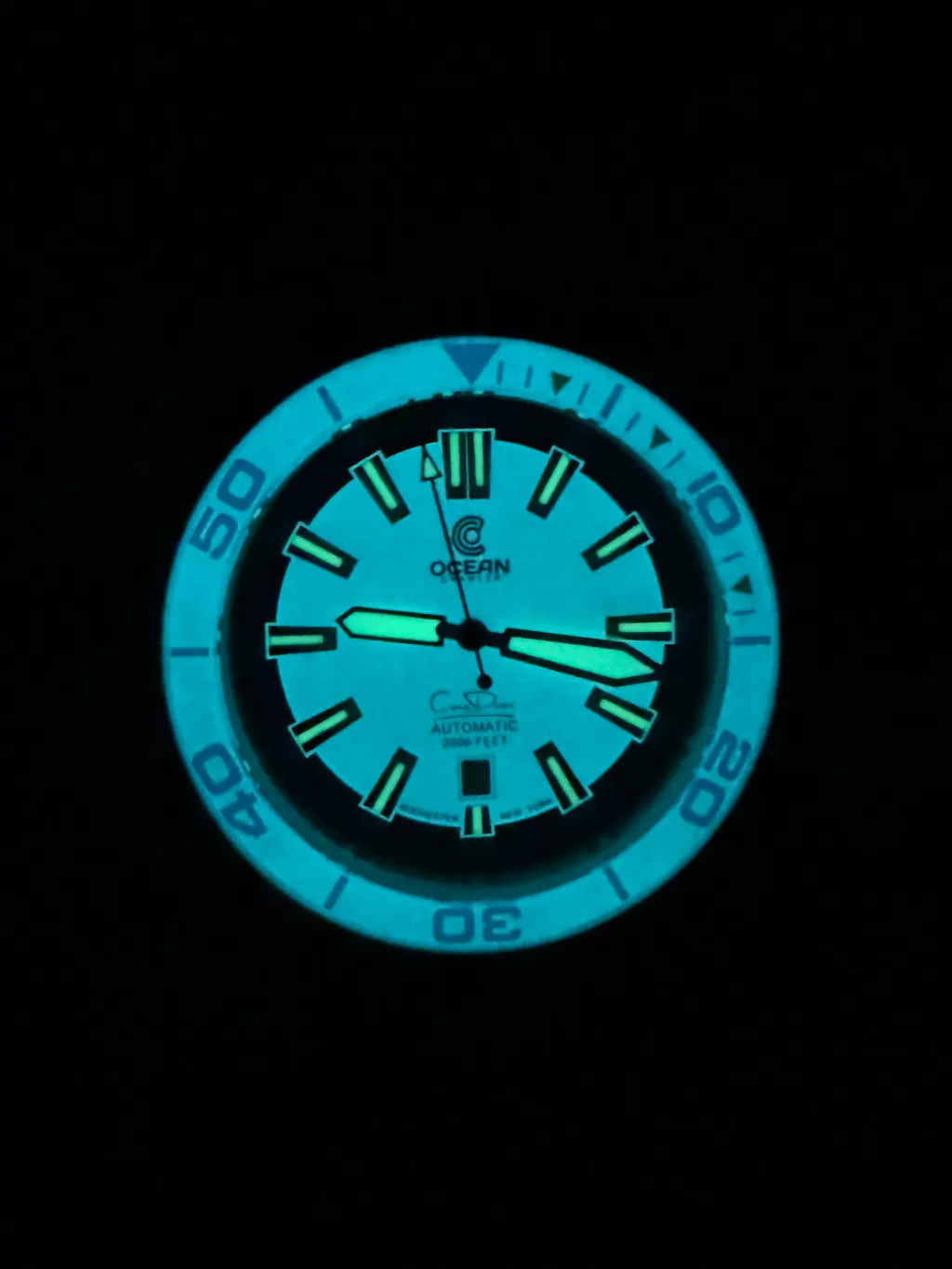 This was my first Ocean Crawler watch and after receiving it I think I will stick around for a few more in the future! The lume on this watch is impressive! I have several other watches with a fully lumed face and this is one of my favorites. The color choice is tastefully and beautifully done! This watch is nice but it gets even nicer in the dark!